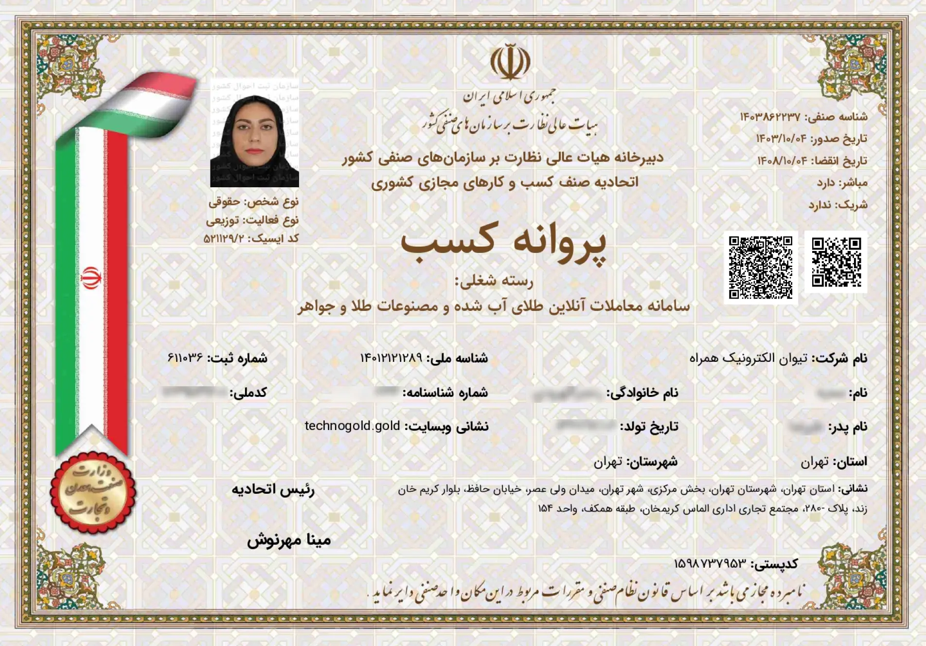 بررسی مجوزها، اطلاعات ثبتی و سوابق فعالیت تکنوگلد